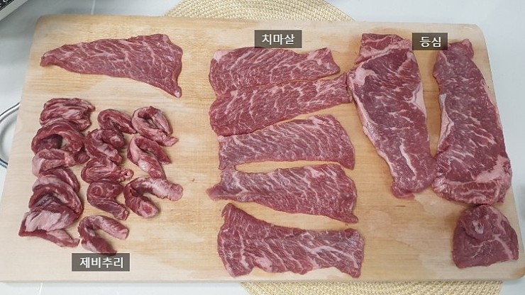 제비추리는 소의 목과 등심의 분리 선을 정형한 부위입니다.